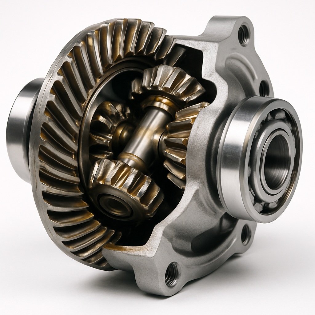 Quando l’auto percorre una curva, la ruota esterna deve percorrere una distanza maggiore rispetto a quella interna. Senza il differenziale, le ruote sarebbero costrette a girare alla stessa velocità, causando slittamenti, usura prematura degli pneumatici e perdita di controllo del veicolo. Il meccanismo utilizza una serie di ingranaggi conici e satelliti che permettono questa differenza di rotazione.