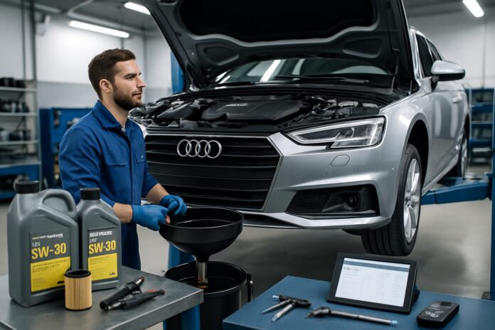 La scelta dell’olio non è opinabile. AUDI specifica esattamente quali normative deve rispettare il lubrificante. Le più comuni sono VW 502.00 per benzina e VW 505.00/507.00 per diesel. I motori più recenti richiedono VW 504.00/507.00, compatibili con intervalli Long Life e sistemi di post-trattamento.