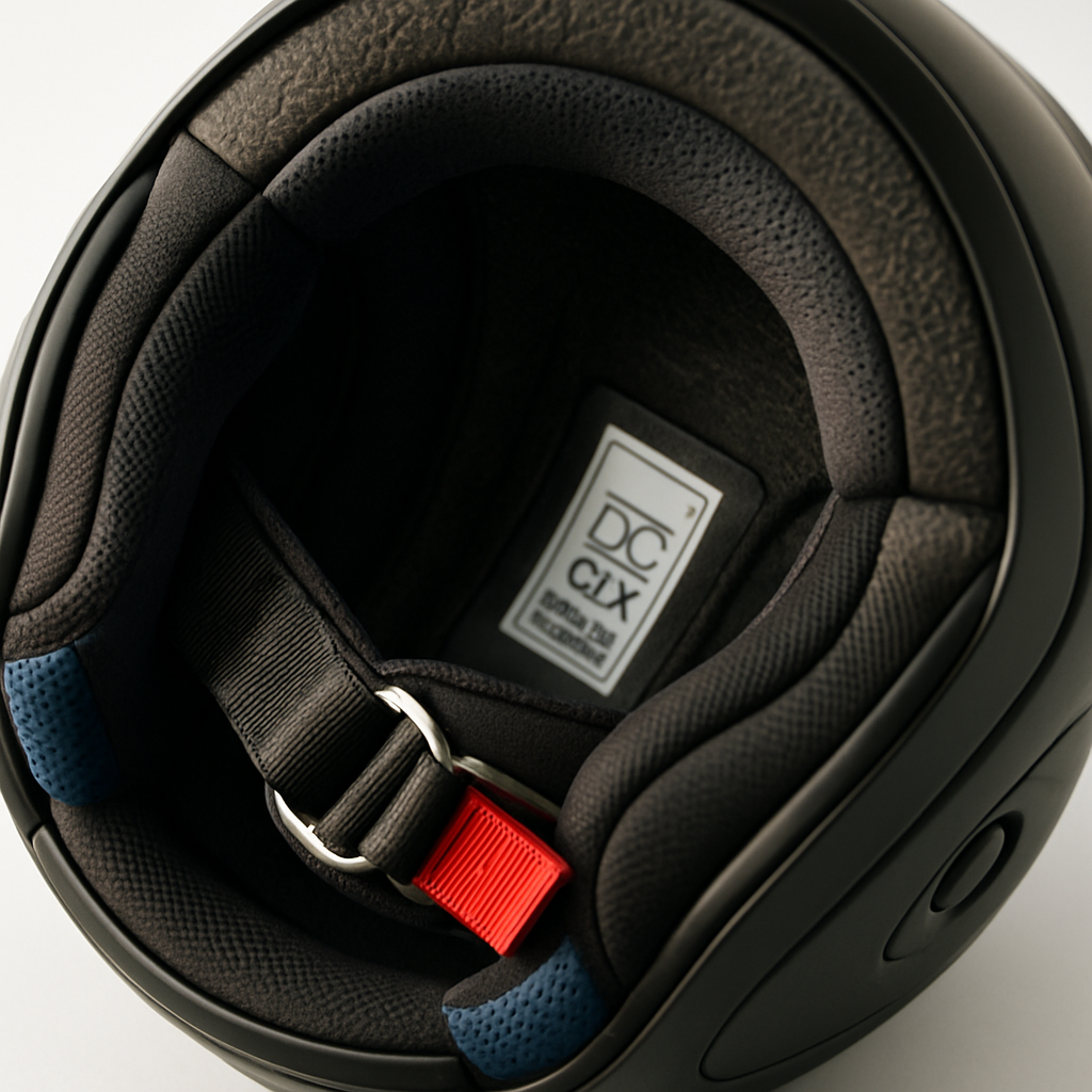 Ogni casco omologato riporta all’interno una serie di informazioni fondamentali. La data di produzione si trova solitamente su un’etichetta cucita o stampata nella calotta interna, vicino alla cinghia. Questo dato è espresso con mese e anno di fabbricazione.