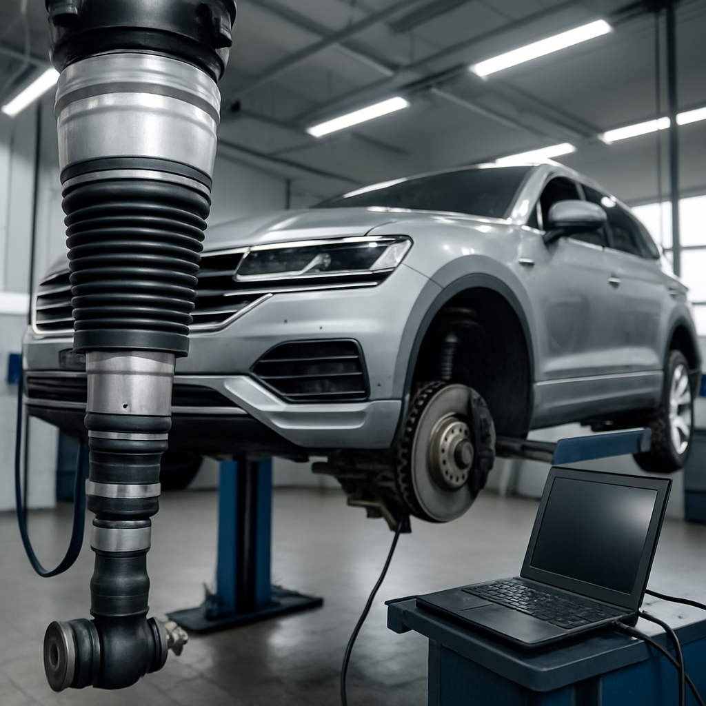 I sintomi includono abbassamento del veicolo durante la notte, messaggi di errore sul quadro e ride quality compromessa. Le cause principali sono le membrane degli ammortizzatori pneumatici deteriorate, tubi dell’aria danneggiati e compressore usurato.